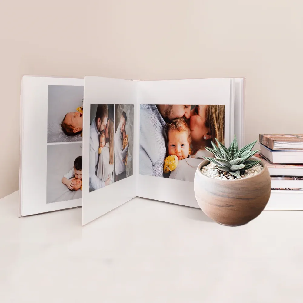 Fotolibri con copertina rigida. Che tu voglia stamparne solo una copia per te o più pezzi da regalare ad amici e familiari, il fotolibro personalizzato con copertina rigida è il prodotto perfetto per conservare i ricordi più belli del tuo viaggio o esibire le strategie di business della tua azienda. La copertina rigida resistente protegge fino a 200 pagine che possono essere riempite con i tuoi ricordi e momenti più importanti per te. Puoi scegliere diverse dimensioni e tipi di carta per stampare un perfetto fotolibro personalizzato.